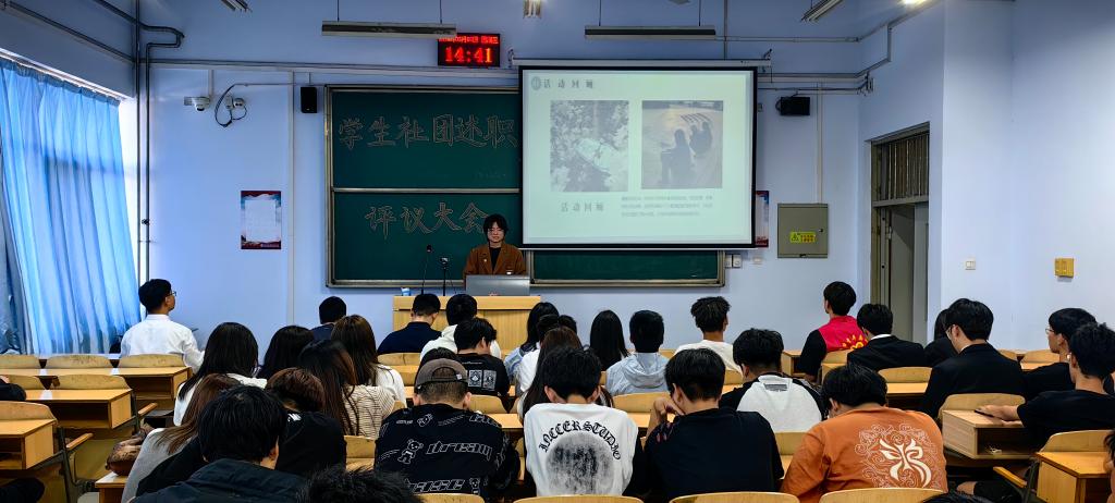 本次大会分4组同时进行,共37个登记在册的校级学生社团参与,类型涵盖思想政治类、学术科技类、文学艺术类、体育活动类、志愿服务类。会上,各学生负责人依次登台,围绕思想引领、组织建设、实践活动、深化改革四个方面,深入剖析过去一年的经验做法和精彩瞬间,明确下一步的工作计划和发展方向,展现了奋发有为的精神面貌和专业扎实的综合素质。评委老师根据学生的述职材料和现场表现,进行客观公正的打分,他们不仅对社团的各项成绩给予充分肯定,也对存在的问题和不足提出了宝贵的建议,现场气氛热烈。