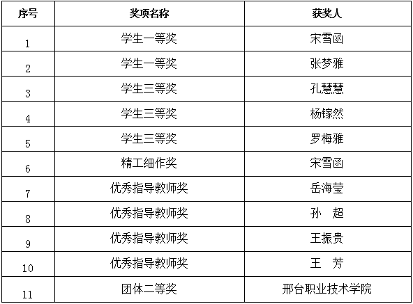 11月23日-24日,第十届全国职业院校学生制版与工艺技能大赛在成都举行。我院服装工程系选派的5人代表队最终荣获团体二等奖,2个一等奖,3个三等奖,1个精工细作单项奖,4个优秀指导教师奖多项荣誉。