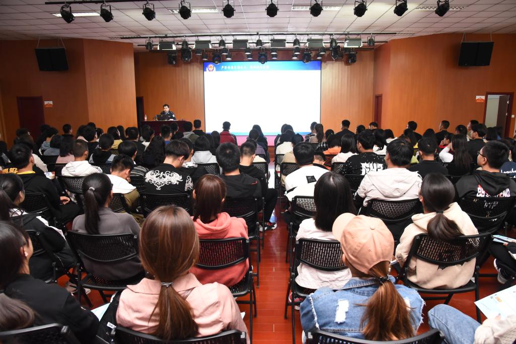 张国杰警官结合自身工作实际和典型案例,讲解了网络上常见的违法行为,例如编造散布网络谣言,以此教育同学们要提高认识,识别网络谣言,做到不造谣、不信谣、不传谣。同时介绍了针对大学生的网络诈骗陷阱,其中包括仿冒身份类欺诈、校园贷、虚构险情欺诈、通过网站、QQ、微信或短信发布售卖商品消息诱骗受害人等,并通过典型的案例资料阐述了网络诈骗的防范方法。