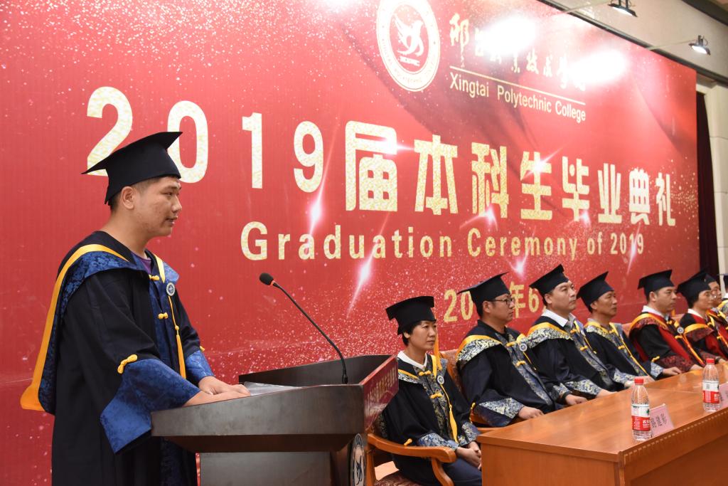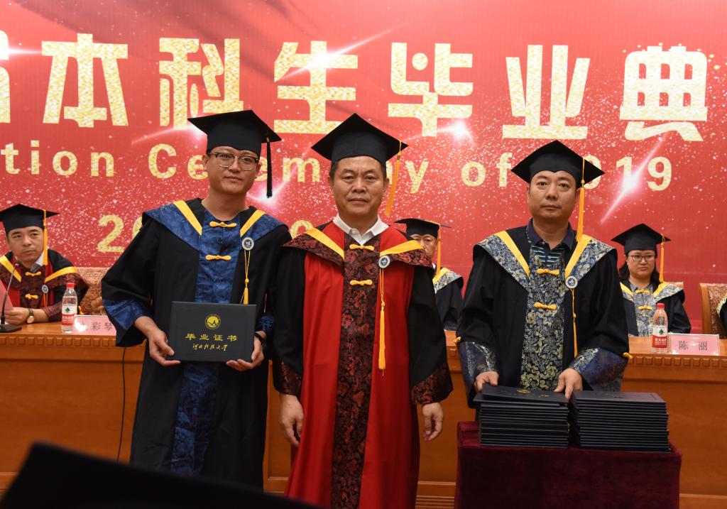 随后,副院长李贤彬宣读《关于表彰2019届河北省优秀毕业生的决定》,并为12名毕业生颁发了优秀毕业生证书。汽车工程系教师代表陈丽、机电工程系毕业生代表李博先后发言。典礼尾声,院长马东霄给毕业生颁发了毕业证书。毕业生与学院领导合影留念。
