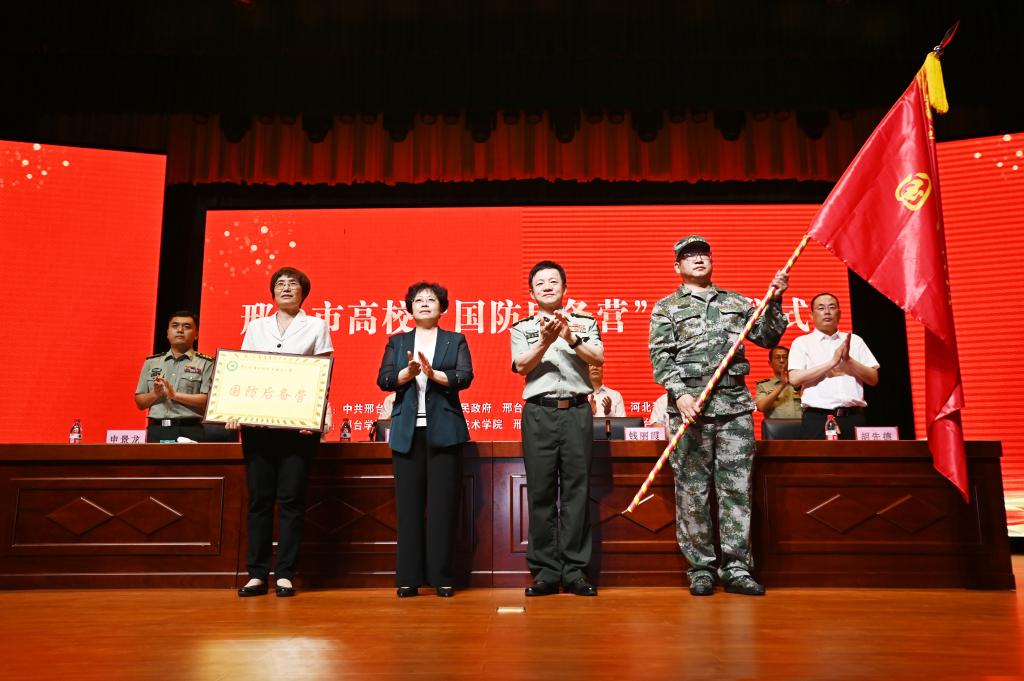 365官网党委书记刘彩琴为此次授旗仪式致开幕辞,她表示学校将以成立“国防后备营”为契机,聚合全校优质办学资源,做好国防后备人才的教育教学工作,着力把“国防后备营”打造成为学生党团建设的思想引领阵地、国防建设的人才储备阵地,为新时代国防和军队建设做出积极贡献。邢台军分区司令员韩宏良和邢台市政府副市长钱丽霞分别作了重要讲话,强调了“国防后备营”建设工作的重要深远意义,指出各学校要高起点规划、高标准建设、高质量保障“国防后备营”的建设,军地、军校合力把更多更好的优秀大学生输送到部队,为新时代国防和军队建设作出积极贡献。仪式上,韩宏良与钱丽霞分别为五所学校“国防后备营”授旗、授牌。