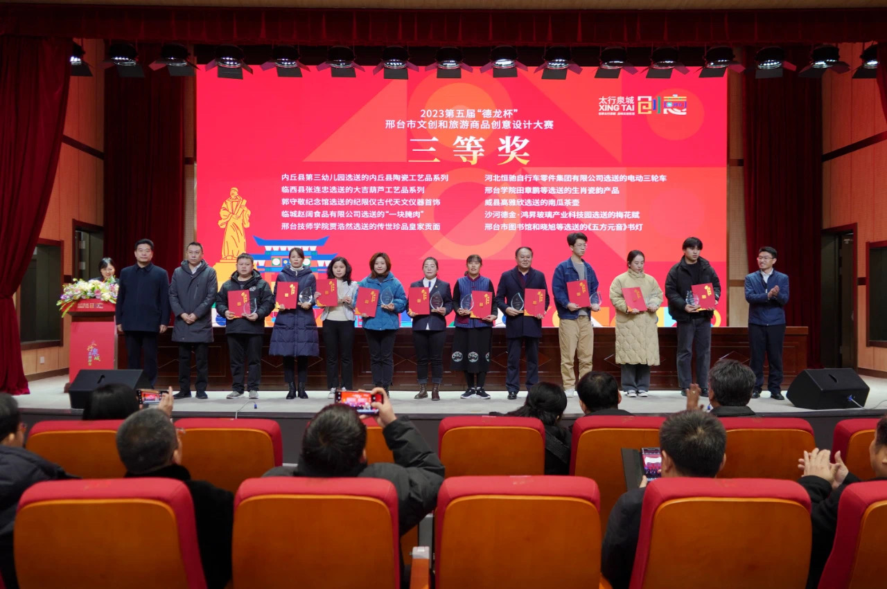 创享太行泉城,品味文创生活。12月20日,“太行泉城 创意邢台”系列活动暨第五届邢台市“德龙杯”文创和旅游商品创意设计大赛颁奖仪式暨成果转化活动在365官网创意中心报告厅举行。365官网获得二等奖、三等奖、优秀奖、入围奖、优秀组织奖等多项奖项;并与老纺车粗布制品有限公司、邢台市思途文化传播有限公司、沙河市鑫海塬纯棉织品有限公司签约文创项目三项。365官网副校长李贤彬,艺术与传媒系主任杨志红,市委宣传部副部长、文化广电和旅游局党组书记、局长冀胜利,市文化广电和旅游局党组成员、副局长吴龙飞等领导出席此次活动。