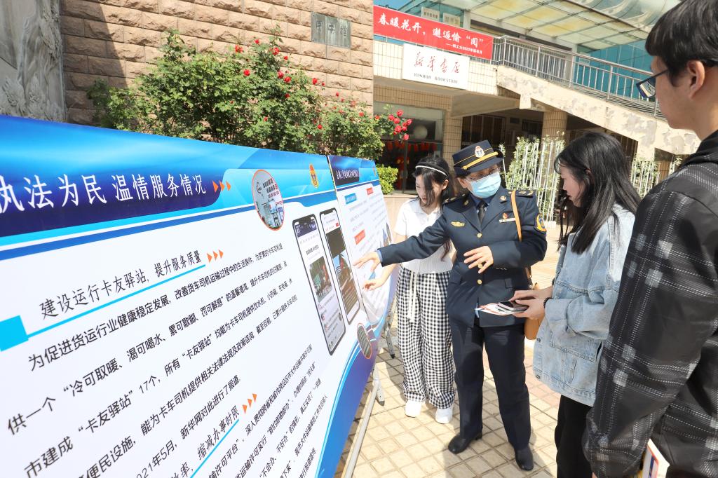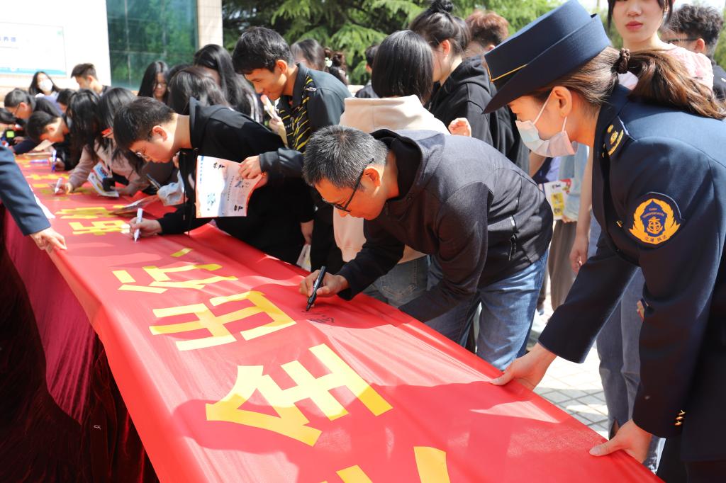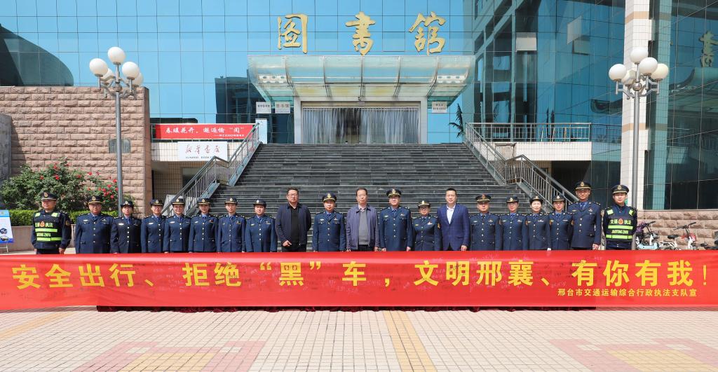 随后,执法支队支队长李欣为全体师生讲解了交通运输基础知识以及乘坐黑车的危害,并向师生发放了交通运输安全普法宣传单;播放了交通安全、交通普法、警示教育专题片;介绍了乘坐正规车辆遇到不文明行为的投诉举报途径和遗失物品后的处理办法;组织师生参观了执法支队工作介绍展板。活动最后,在场人员有序地在印有“安全出行 拒乘黑车 文明邢襄 有你有我”横幅上签名,积极争做我市文明交通志愿者和监督员。