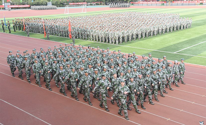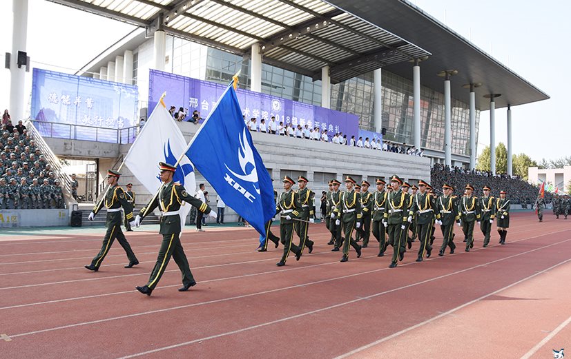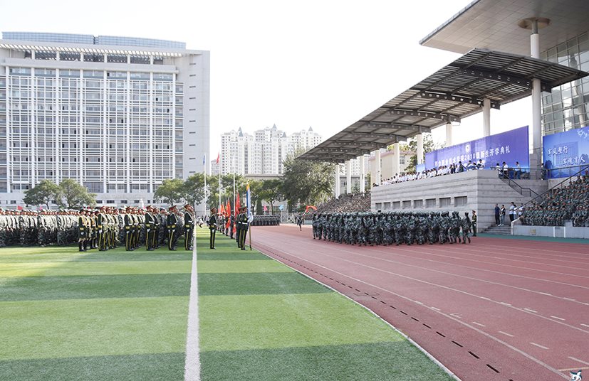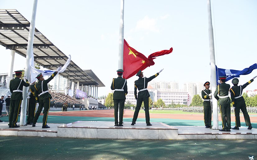 典礼在庄严的国歌声中拉开帷幕,鲜艳的五星红旗在两面校旗的护卫下,随着雄壮的国歌声冉冉升起,高高飘扬在校园上空。升旗仪式结束后,在院国旗护卫队的带领下,2018级新生军训分列式汇报表演正式开始,各系方队在雄壮的军乐声中依次经过主席台,接受学院领导的检阅,5100余名军训新生队列整齐,步伐一致,口号响亮,意气风发,展现出良好的军人素养、严谨的思想作风、奋发向上的精神风貌和朝气蓬勃的青春气息。