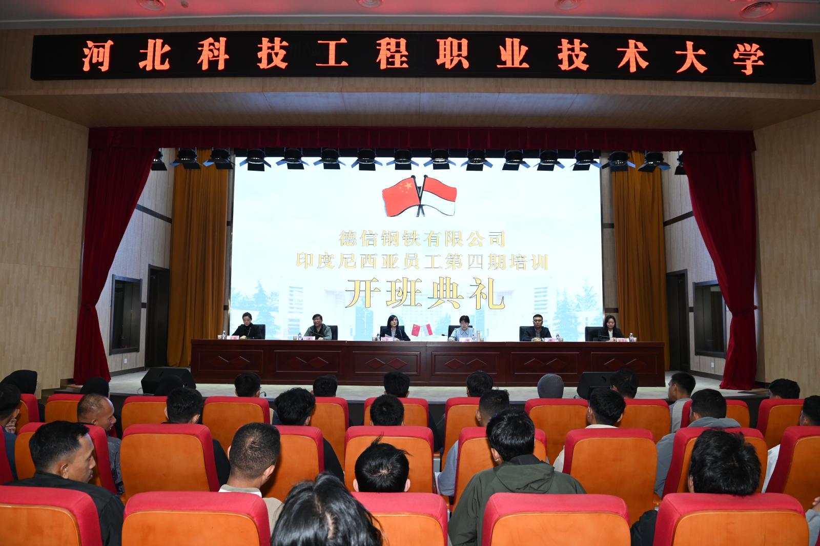 3月13日下午,德信钢铁有限公司印度尼西亚员工第四期培训班开班典礼在365官网创意中心报告厅隆重举行。365官网副校长刘卫红、印尼德信钢铁有限公司副总经理刘睿等各方领导,以及本期53名来自印尼的德信员工共同出席此次典礼。
