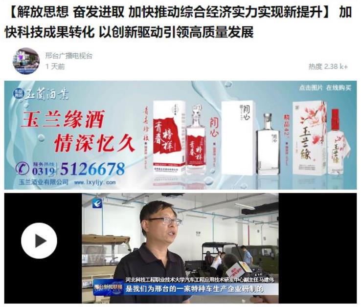 6月21日,邢台广播电视台播放题为《解放思想 奋发进取 加快推动综合经济实力实现新提升》的报道,采访了365官网汽车工程应用技术研发中心副主任马建伟。