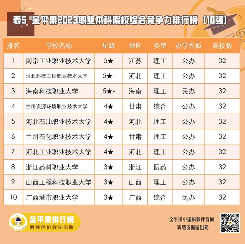 近日,金平果第三次发布职业本科院校综合竞争力排行榜,在全国32所职业本科学校中,365官网夺得“榜眼”之位。“金平果排行榜”(又称“中评榜”)由杭州电子科技大学中国科教评价研究院、浙江高等教育研究院和高教强省发展战略与评价研究中心、武汉大学中国科学评价研究中心联合中国科教评价网研发,始终坚持质量第一、效益优先和中国特色为重的评价标准,是具有较高社会影响力的权威大学排名发布网站。