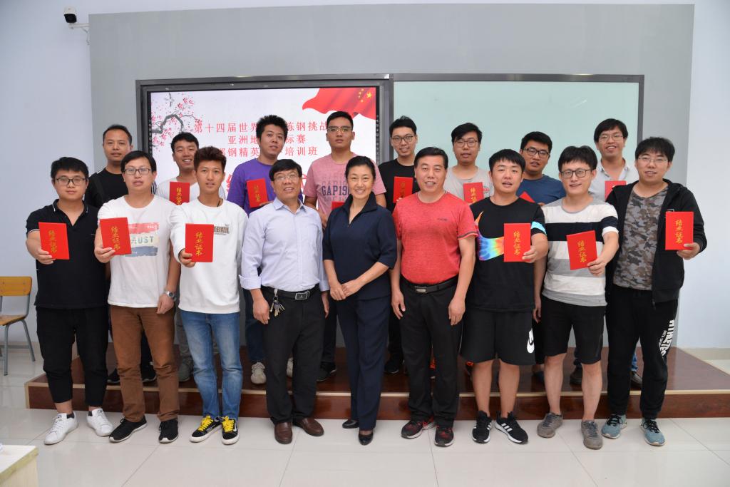 在9月29日举行的结业仪式上,资源与环境工程系赵建国主任作了总结发言,上届世赛冠军唐晓宇作为学员代表也畅谈了培训收获与体会。随后赵建国主任和张海臣老师为14名学员颁发了结业证书。经过本次培训,每位学员的实战水平均得到不同程度的提高,为备战世赛奠定了坚实的基础,学院也在与企业的交流与合作中积累了宝贵的经验。最后,预祝河钢集团邯钢公司精英选手在模拟炼钢挑战赛亚洲地区锦标赛取得佳绩!