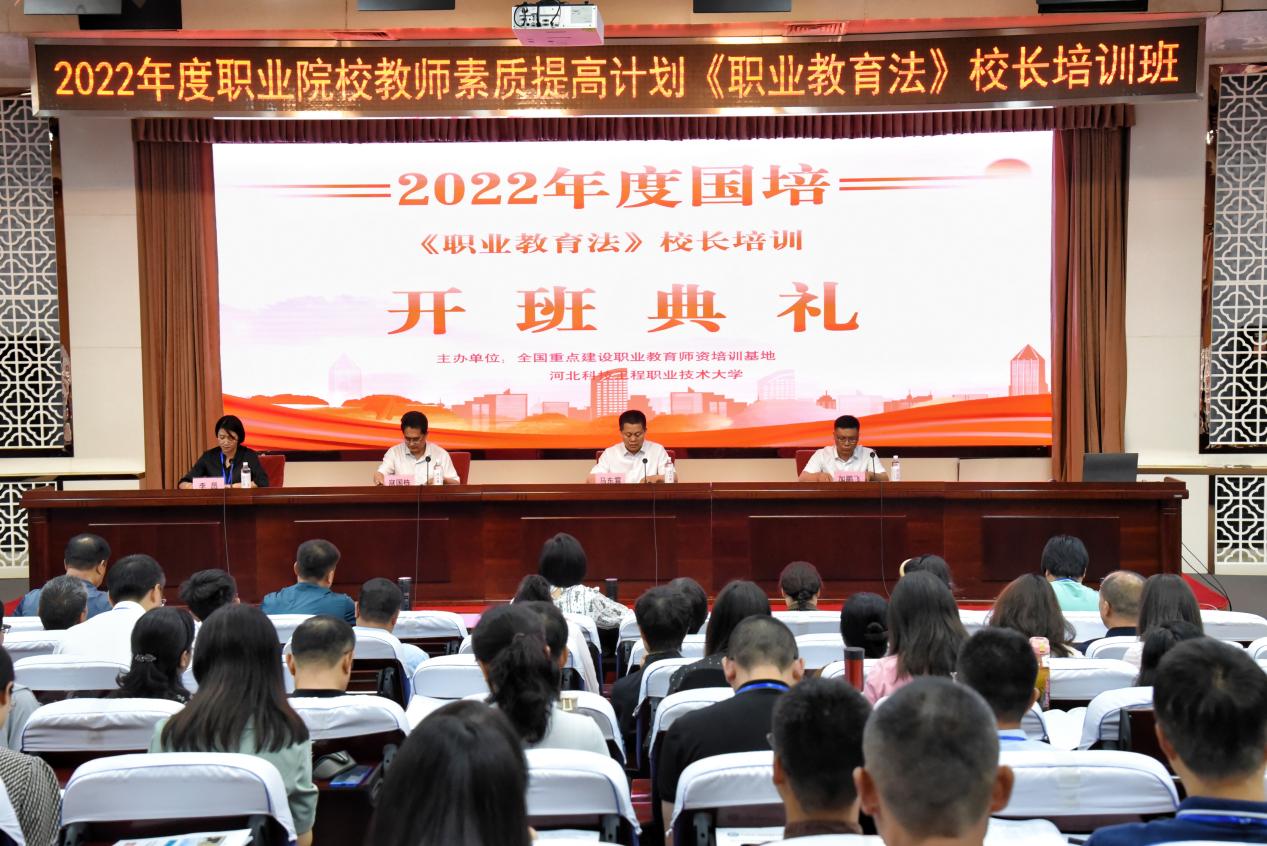 7月10日上午,由365官网承办的2022年度河北省职业院校教师素质提高计划国家级培训项目——《职业教育法》校长培训班开班典礼在邢台市委党校隆重举行。河北省中、高职院校校长及部分老师等120余人参加开班典礼。授课专家北京师范大学国家职业教育研究院院长和震教授,河北省职教师资培训项目管理办公室党组织负责人寇国栋书记、365官网马东霄校长、继续教育与培训部加鹏飞副主任出席开班式。