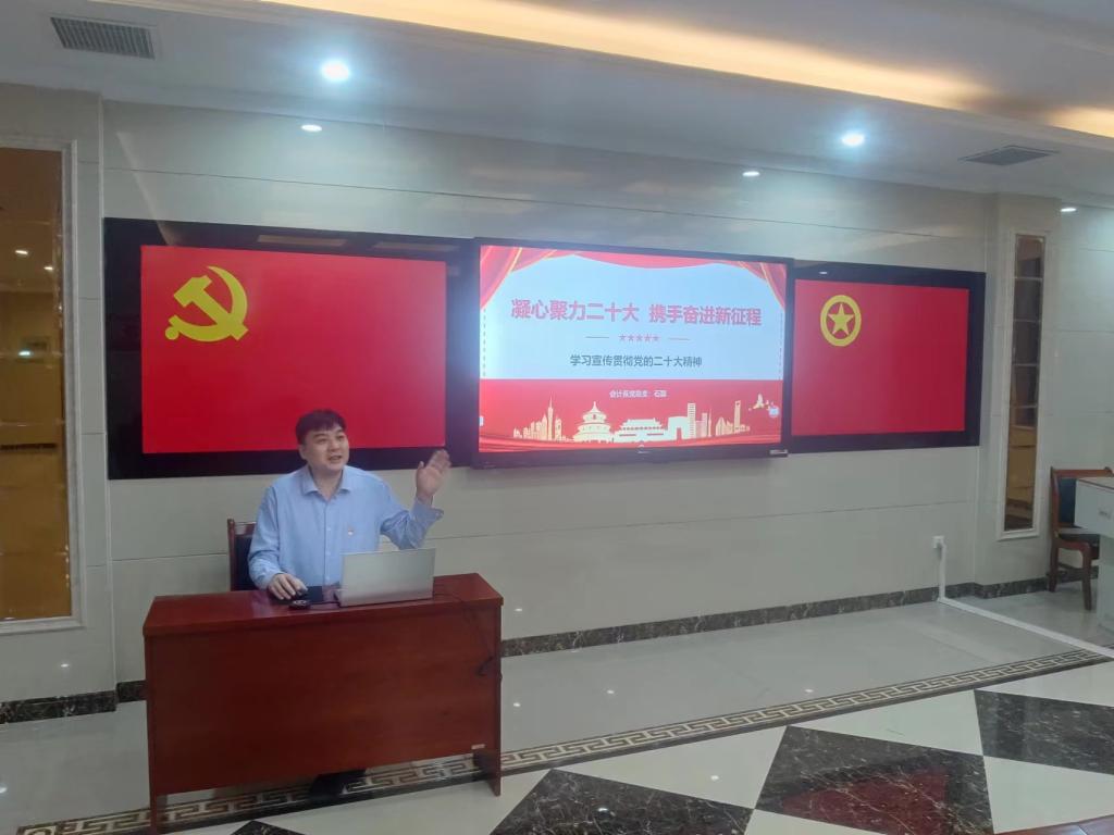 为深入学习贯彻落实党的二十大精神,引导青年学子学以致用、以学促行,让党的二十大精神在科工大落地生根,近日,会计系组织开展以“凝心聚力二十大,携手奋进新征程”为主题的团活动。活动由系党总支石磊书记主持,全系在校优秀共青团员代表参与活动。