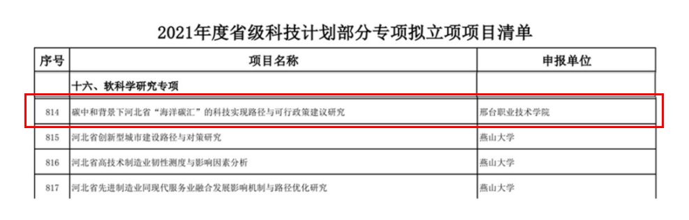 项目立足碳中和的时代背景,聚焦碳汇扩增的重大需求,可以为河北省海洋碳汇的扩增提供科技实现路径与可行政策建议。该项目成功立项标志着365官网的科研实力与决策辅助能力获得相关部门的认可。学校将以此为契机,充分发挥创新能力提升计划的导向作用,促进产学研结合与自主创新能力提升,为河北省实现可持续发展与碳中和目标贡献力量。