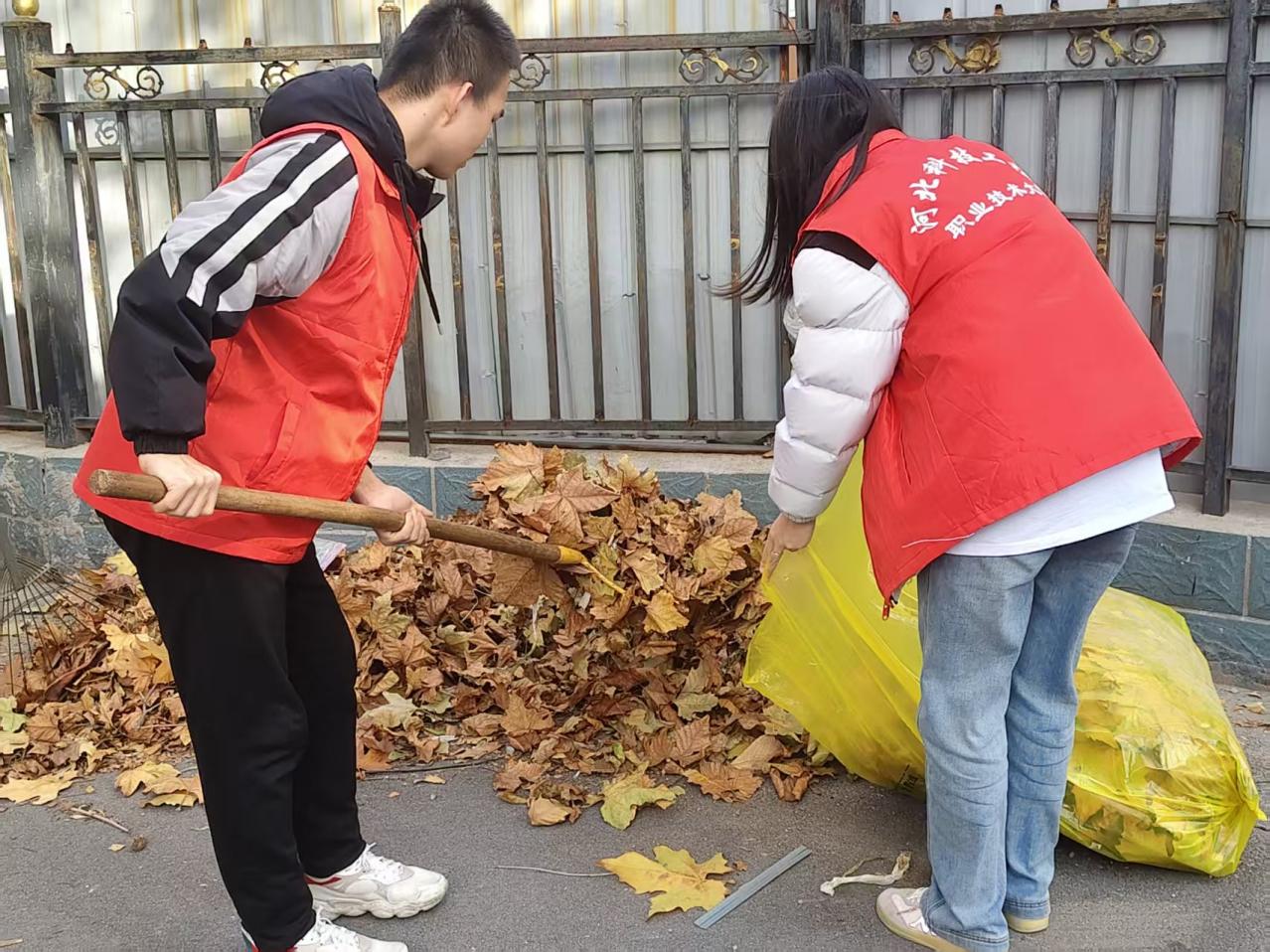 活动前,志愿者们提前与社区工作人员对接,明确清扫范围与分工,在活动当天,志愿者们在西区B区完成集合,分成七个小组,有序前往社区。到达社区后,由工作人员为大家分发清扫工具,大家分工协作,有的清扫主干道落叶,有的撑起塑料袋收落叶,遇到难扫的角落就徒手捡拾,不放过任何卫生死角。经过大家的努力,社区道路变得干净整洁,焕然一新,装满落叶的垃圾袋整齐堆放等待清运,阳光洒在干净的路面上,居民们的笑脸成了最好的回应。