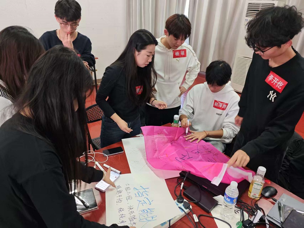 6日上午,同学们齐聚在大学生活动服务中心,培训活动在“破壁初见”中拉开帷幕。六个小组围绕在一起,自主设计队名、口号及团队契约,并通过绘制队旗形式展示团队理念。在“绝技众筹”环节,各小组针对当下面对的问题展开头脑风暴,提出见解并创新解决方案。上午的培训以“集思广益”环节收尾,各小组需在40分钟时间内完成校园文化活动的策划案,并以PPT形式进行成果展示,充分考验团队的协作与统筹能力。