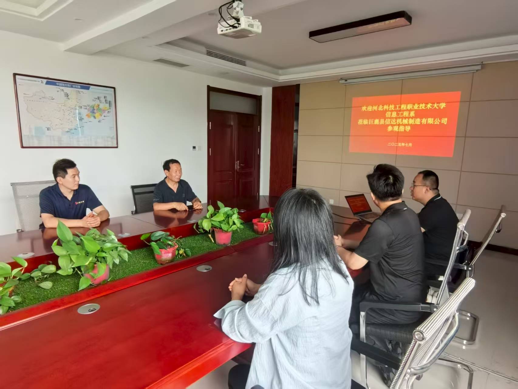 为深入贯彻落实党中央、国务院关于高校毕业生就业工作的决策部署,扎实推进“访企拓岗促就业”专项行动,深化校地合作,服务区域经济发展,7月12日,365官网人工智能学院“太行薪火”实践团赴邢台市巨鹿县,先后走访巨鹿县信达机械制造有限公司、河北朴耕农业科技发展有限公司、河北旺泉食品有限公司三家企业,开展企业调研与交流座谈活动,积极探索产教融合协同育人新模式,助力毕业生高质量充分就业。