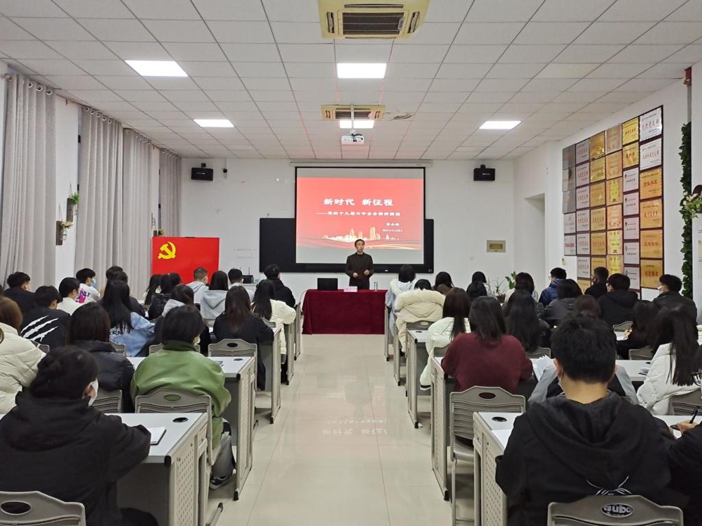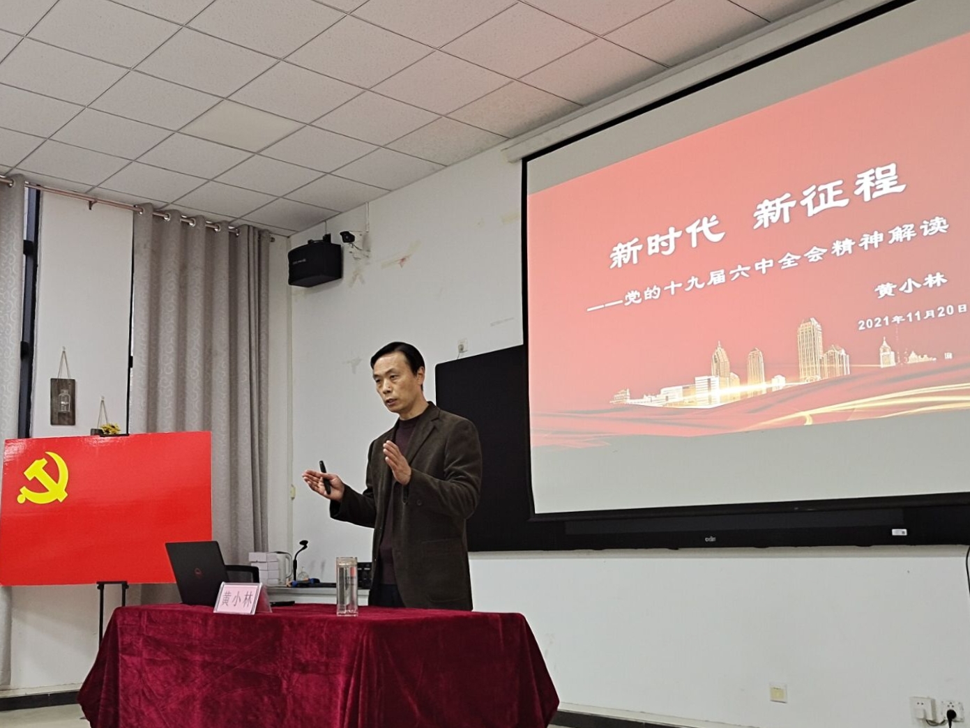 11月20日,系党总支书记黄小林以《新时代 新征程——党的十九届六中全会精神解读》为题为全体党员发展对象讲授了第一讲党课。黄书记围绕“改革开放以来的历次六中全会”“百年党史中的三个重要历史决议”和“学习贯彻党的十九届六中全会精神”三个部分进行了详细讲解,鼓励广大学员不断加强党史学习,锤炼自身党性修养,用伟大的红色精神鼓舞自己,在实践中以党员标准要求自己,发挥先锋作用,勇于担当作为。