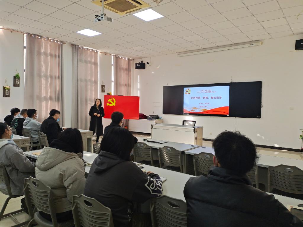 11月21日-24日,系党总支副书记武立博、系学生党支部书记李慧琼、系团总支书记马晓利、系学生党支部宣传委员张玉丹分别以《党支部的制度建设》《党的组织制度、党的纪律、党员的权利和义务、党的性质与纲领、党的根本宗旨》《中国共产党发展历程》《伟大建党精神》为题,为学员进行了集中授课,对党规党纪、党章党史等内容进行了详细解读。
