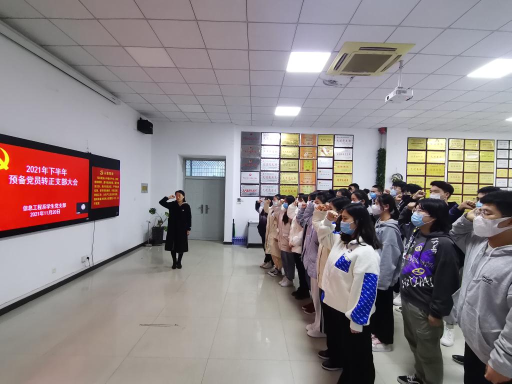 会议伊始,李慧琼老师报告了本支部党员的应到数、实到数、缺席数,宣布会议有效,并对大会准备工作以及大会程序进行了说明。接着,39名拟发展对象宣读了各自的入党志愿,汇报了自己对党的认识、工作、学习等情况。随后,各拟发展对象的入党介绍人和其他与会党员展开了充分讨论。经到会的正式党员不记名投票方式表决,我系39名拟发展对象均被党支部接收,成为中共预备党员。随后,全体预备党员面向党旗,高举右手庄重宣誓。大会最后,武副书记对39位同学成为光荣的预备党员表示了祝贺,并希望大家以此次大会为新起点,在今后的学习和生活中,按照党员标准更加严格要求自己,切实发挥先锋模范作用。