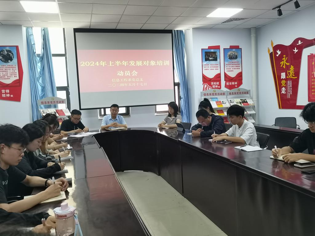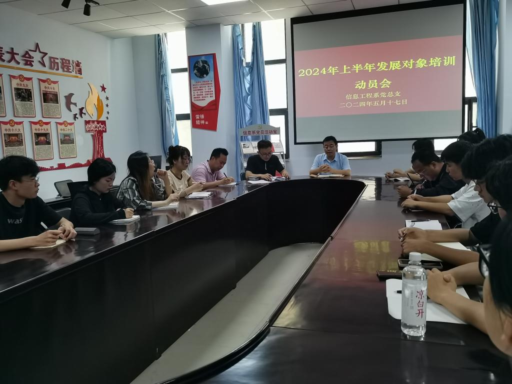 为进一步提高发展对象的思想政治觉悟和思想素质,深入学习贯彻习近平新时代中国特色社会主义思想,5月17日上午,我系于党员活动室召开了2024年上半年发展对象培训动员会。系党总支书记徐建平、学生党支部组织委员孙新博、宣传委员张玉丹、纪检委员房超、辅导员朱振琢和高珊与13名2024年上半年发展对象参加了本次会议。会议由孙新博老师主持。