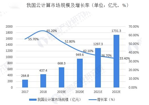 从市场规模来看,我国云计算2019年市场规模为668.3亿元,预计到2022年,我国云计算市场规模将达到1700亿元。
