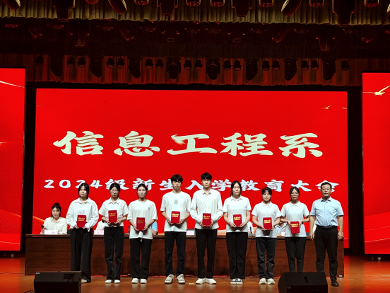 系主任冯磊分别从师资力量、科研成果、系部发展等方面进行了详细的介绍,同时寄语同学们:首先,要树立人生目标,脚踏实地,规划人生,勇于挑战,超越自我;其次,认真学习,拓宽视野,勇于创新,勇于探索;再次,积极参与社会实践,锻炼自我,提升自我。希望同学们肩负起用科技助力经济发展的重大任务,积极实践,以全新的姿态、饱满的精神为信息工程系发展助力。并祝愿同学们在信息工程系这片沃土上茁壮成长,梦想成真。