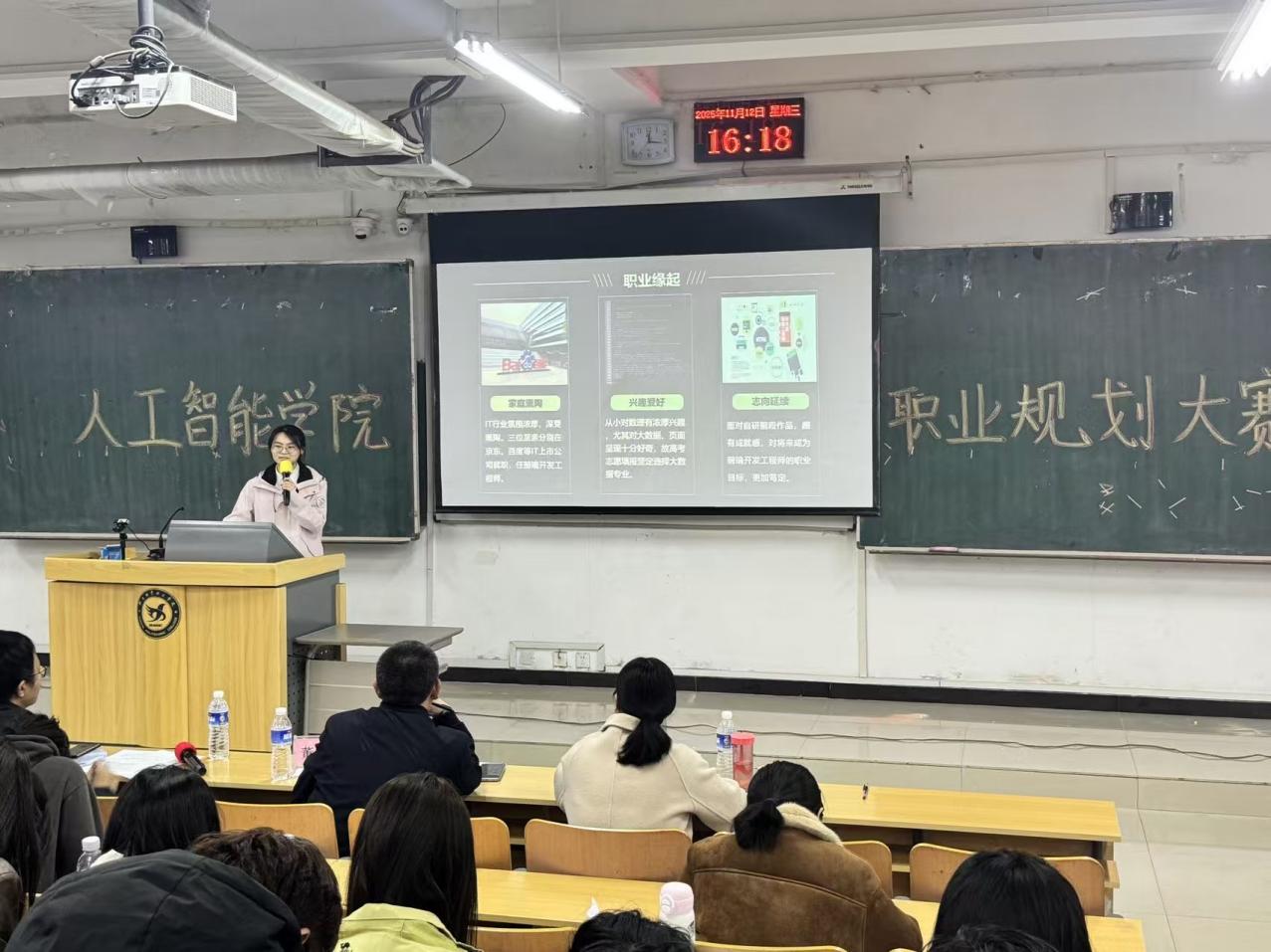 青春无界,规划先行!为引导学生树立正确的成才观、就业观和职业规划意识,提升综合竞争力,明确职业方向,2025年11月12日下午,人工智能学院在西区c2-1举办了“以规划定方向,用竞赛展才华”职业规划大赛。学生科科长孙新博老师、招就处杨靑辉老师、网络教研室董会国老师,大数据教研室吴超楠老师和25级辅导员朱振琢老师出席并指导,为选手指引了职业规划的方向。