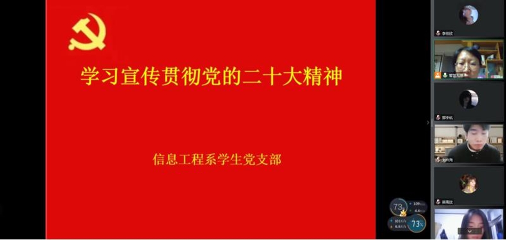 为深入学习宣传贯彻党的二十大精神,按照我系学习党的二十大精神宣讲安排,11月29日晚,系党总支组织委员、学生党支部书记李慧琼以《做优秀党员,书时代华章》为题宣讲了党的二十大精神,全系学生党员、部分入党积极分子、2022年下半年发展对象聆听了宣讲。