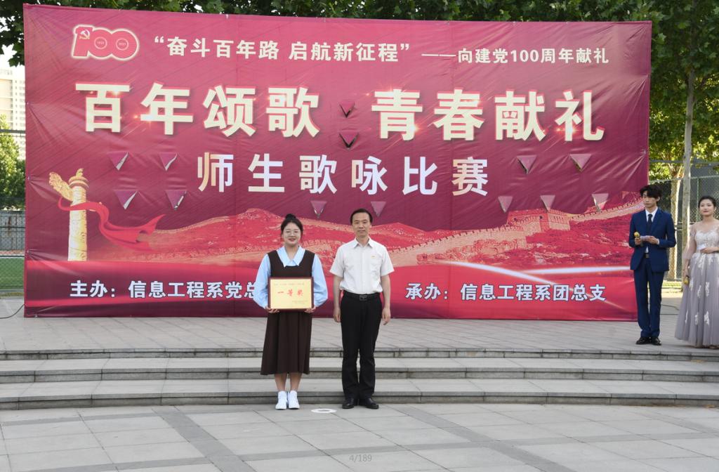为庆祝党的百年华诞,讴歌党的丰功伟绩,信息工程系于5月26日下午在西区广场开展了“百年颂歌,青春献礼”师生歌咏比赛决赛。