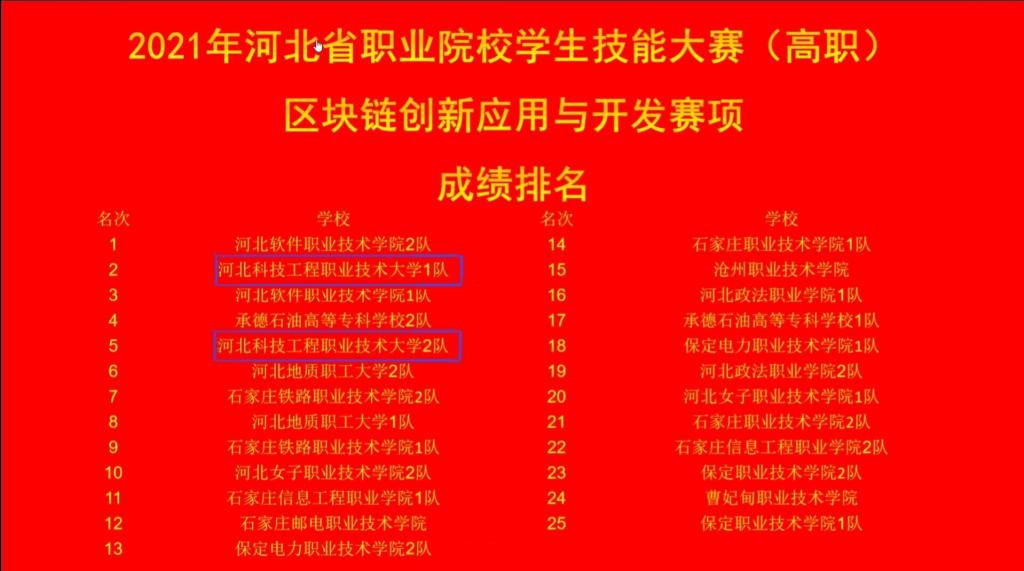 2021年12月2日,由河北省教育厅主办、新产教河北信息科技有限公司和北京知链科技有限公司协办的河北省首届“区块链创新应用与开发”大赛在云端(知链教赛一体平台)上举办。