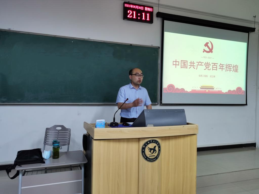 为更好地引领学生学史明理、学史增信、学史崇德、学史力行,6月7日晚,我系党总支副书记武立博以《中国共产党百年辉煌》为题为我系2020级学生代表讲授了一堂内容丰富、生动有趣的党史课。