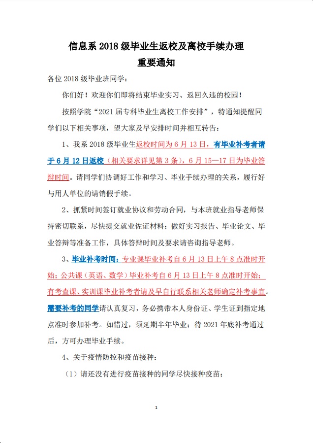 信息系2018级毕业生返校及离校手续办理重要通知