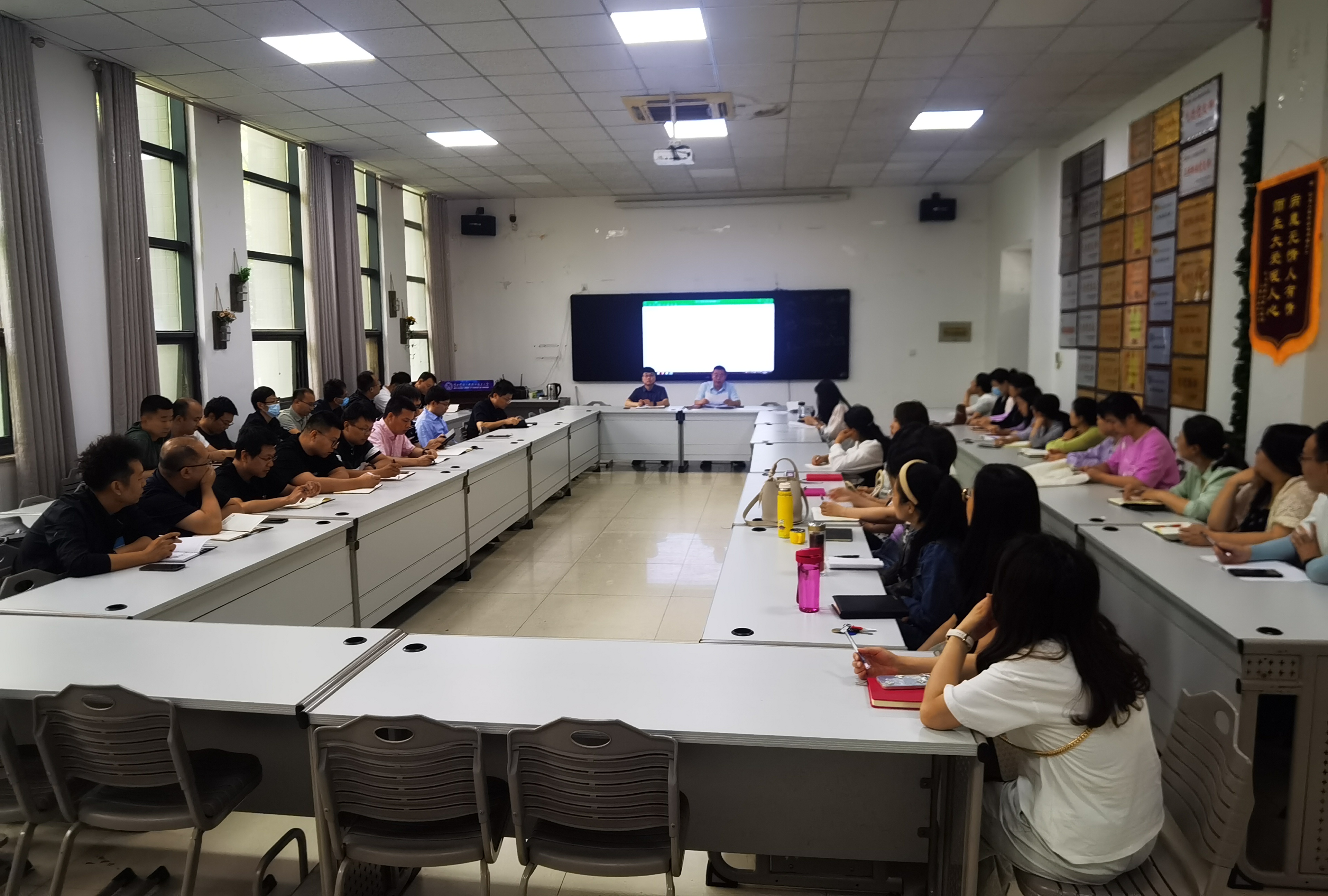 2025届辅导员侯建,分析了学院各专业,各班级就业情况,并深入讲解了毕业生就业登记的流程以及审核过程中的具体要求,为就业工作的规范化开展提供了有力支持。学生工作科科长孙新博在会上针对毕业生常见问题进行了全面解答,同时着重提及了学生就业期间的心理疏导工作,以及学生返校后的稳定与秩序维护,从多个层面为就业工作的顺利开展提供了全方位、深层次的指导。