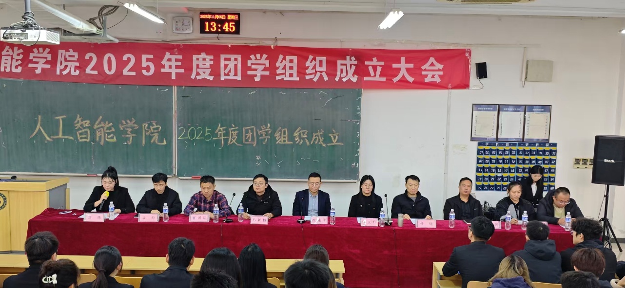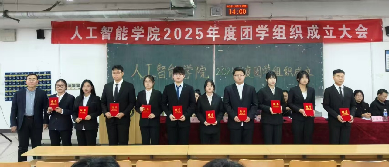 为优化人工智能学院团学组织的结构,提升效率,同时为组织注入新的活力,11月5日下午我院在C2-1隆重举办了“人工智能学院2025年度团学组织成立大会”,我院党总支书记徐建平、学生科科长孙新博、学生党支部书记张玉丹及25级、24级、23级全体辅导员老师出席本次大会。第十八届团总支学生会主要成员、2025年度团学组织全体成员和25级班委参加了会议。会议由团总支书记高珊主持。