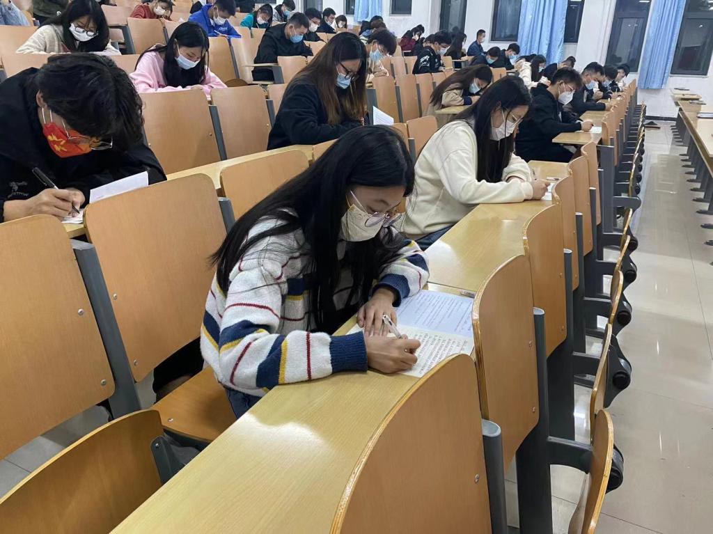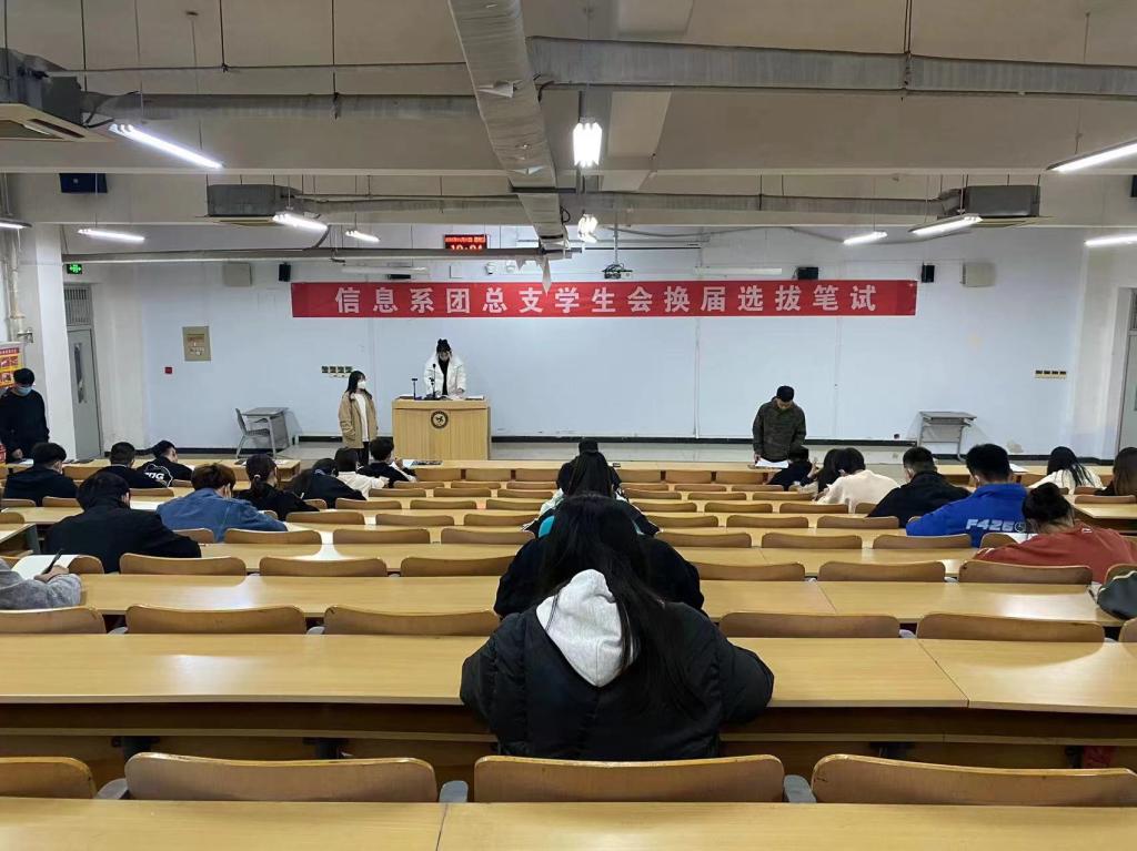 11月2日,我系团总支学生会换届笔试日在C区3-1阶梯教室举行,笔试由辅导员高珊老师和第十五届团总支学生会负责人代表监考。笔试从不同角度考察了同学们的政治理论素养、对所竞选职位的展望以及具体工作处理能力和逻辑思考能力。同学们个个认真答题,奋笔疾书;工作人员巡视监考,保证考场纪律严明。在同学们的配合下,笔试工作顺利完成。11月8日,我系结合面试成绩、笔试成绩和候选人民主测评情况综合考量确定了新一届团学各部门负责人名单。