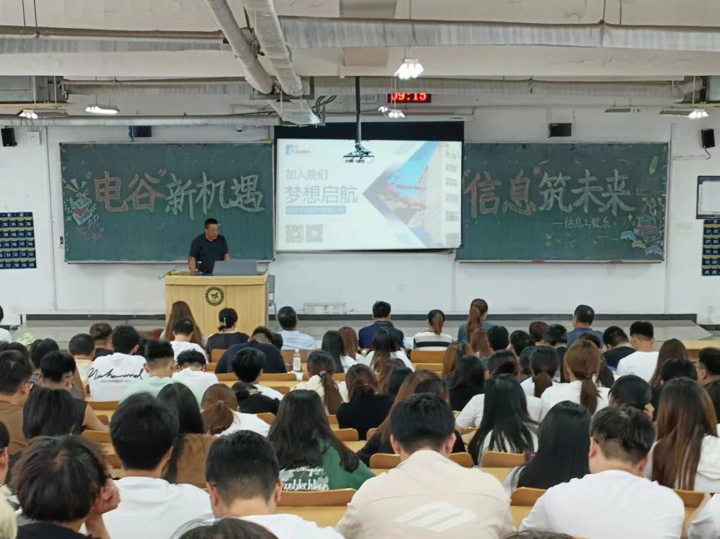 座谈会上,双方就人才培养计划、毕业生就业等展开深入交流,共谋校企合作的前景和意义。副校长褚建立、招生就业处、信息工程系领导及相关教师参与座谈。洽谈结束后,电谷企业一行参观了365官网校史馆、信息工程系实训室。随后,电谷各企业代表在365官网开展宣讲活动,全面展示了企业的优势、发展前景及招聘需求等信息,为学生们提供丰富的职业选择和发展机会。