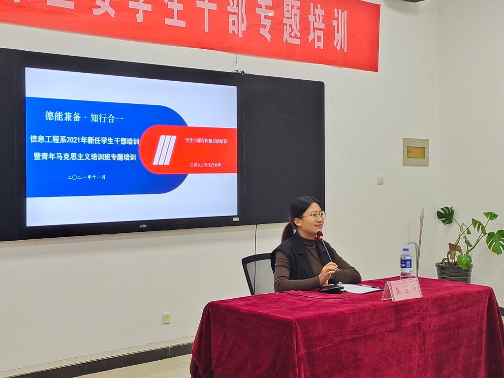 系党总支黄小林书记到现场聆听了此次培训,与大家分享了多年的写作心得,并即兴创作了一首诗,与在座学生干部共勉:“勤学善思练笔声,蓄能赋力踏新程。秋夜月明人尽望,教学相长师生情。”