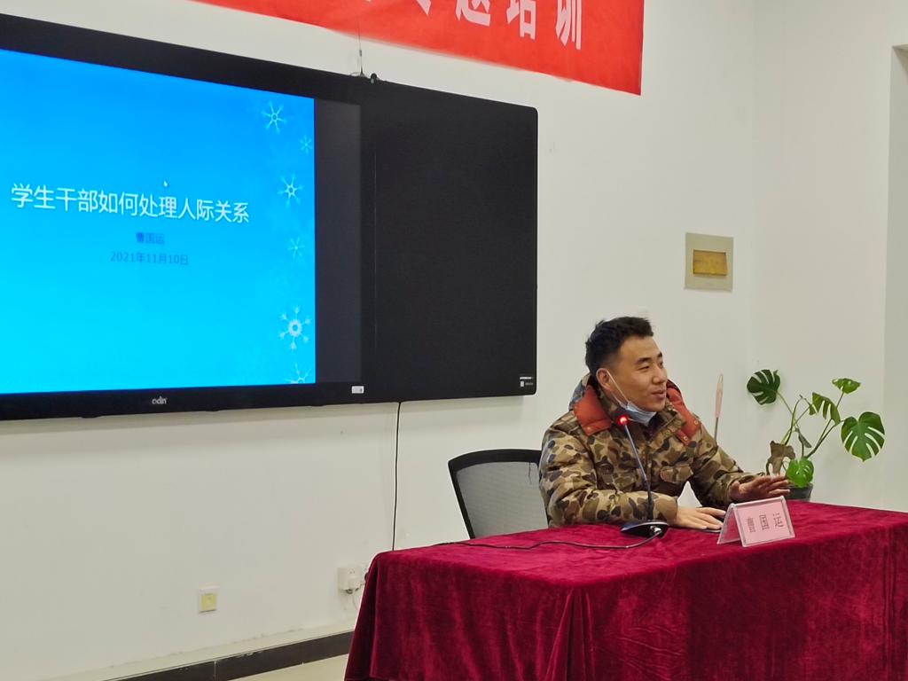15日晚,曹国运老师以“学生干部如何处理人际关系”为主题,结合日常工作经验,就“处理人际关系的误区”“需要改进的问题”“学生干部应妥善处理的几种关系”三个问题为同学们进行了详细讲解。