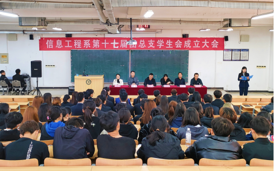 会议伊始,全体起立奏唱团歌《光荣啊,中国共青团》。随后,侯建老师宣读了《信息工程系关于第十七届团总支、学生会干部任命的决定》,李慧琼老师宣读了《信息工程系关于2023级班委任命的决定》。徐建平书记和各位老师分别为第十七届团总支学生会主要学生干部代表、2023级班级干部代表颁发了聘书。孙嘉超代表系第十六届团总支学生会作卸任发言,他表示本届团总支学生会工作虽有着不错的表现,但仍存在不足之处,希望新一届团总支学生会能够吸取经验,积极工作,取得更好的成绩。王媛媛代表系第十七届团总支学生会作上任发言,并表示新一届的团总支学生会将以第十六届团总支学生会为榜样,认真履行好学生干部职责,勤奋学习、积极工作、勇于担当,全心全意为同学们服务。
