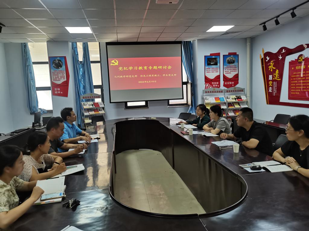 为扎实推进党纪学习教育,筑牢拒腐防变思想防线,6月19日下午,我系教工党支部、学生党支部与马列教学部党支部在我系党员活动室开展了“党纪学习教育”专题研讨会。