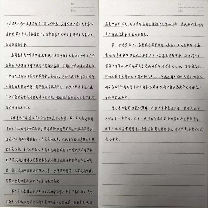 之后观看了红色电影《湄公河行动》,故事的主角是一群缉毒警。这个离普罗大众很遥远的职业,却无时无刻守护着我们大家,全神贯注,积极讨论电影桥段,大家从一开始的兴奋到最后的沉重无一不被其所演绎的中国缉毒警所触动。