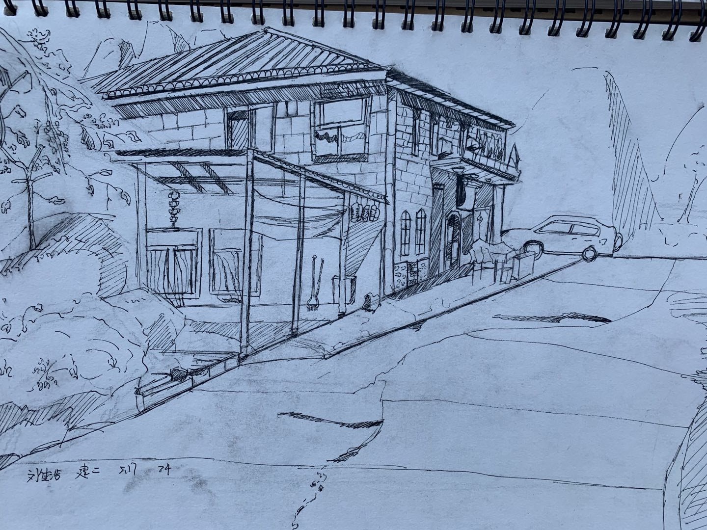 第二天我找了一个地方独自静下来,想着老师辅导的要点和方法,然后再结合眼下看到的风景去画图,画出一张不能说画的好也不能说画的不好,这是我独自完成的第一幅作品,虽然结果不怎么好但是过程我很开心。接下来的那几天写生我都是独自完成的,到最后让我找到了图画的快乐,这次写生让我见识大自然的鬼斧神工,增长自己的实践能力。