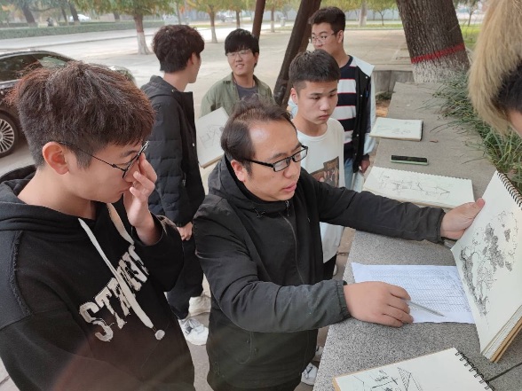 风景写生能提高学生专业创作能力,是增强学生艺术素养的有效途径,也是学生的必修课程。此次实习教学活动由环艺教研室的赵秋菊、欧亚丽、郭雨微、刘双兴、乞灿星、刘颖、尚偌男、王珊8位老师负责教学指导工作。实习中,老师们每天都会进行写生作品任务安排和讲评,并让同学们相互交流写生心得,学生们都表示自己的绘画水平得到了很大提升。