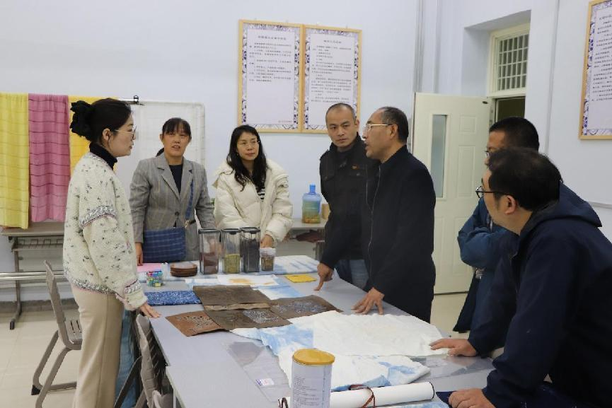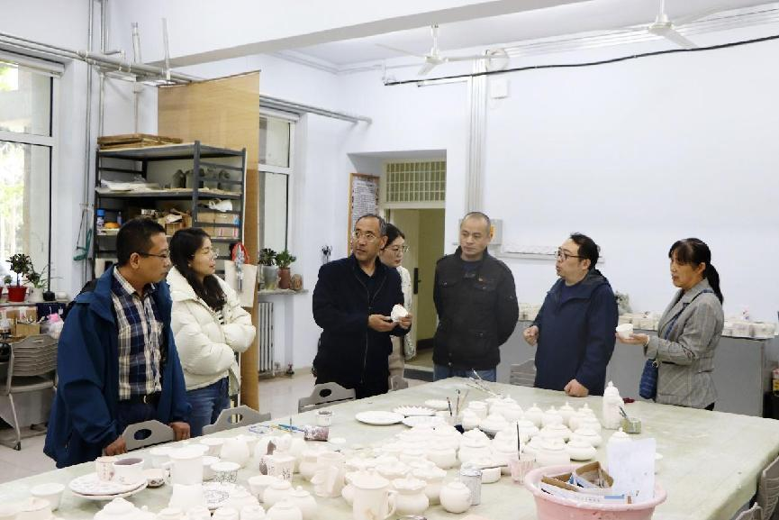 非遗传承创新中心各工作室负责人陪同两位老师依次参观了木艺、蓝染、剪纸和陶艺工作室,两位老师详细了解了各工作室的运行情况,并在参观过程中就非遗的工艺传承和创新发展进行了深入交流,提出了可行性建议,双方还就非遗工艺的文创化设计达成了合作意向。