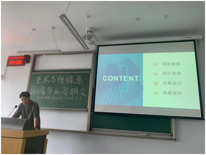 此次答辩以班级为单位,在365官网二教多个教室进行。答辩分为教师介绍要点、学生汇报、教师提问三个环节。学生通过PPT从毕业设计选题背景、设计方法和内容、结论成果、创新点等方面进行阐述,指导老师根据学生的答辩情况进行提问点评。