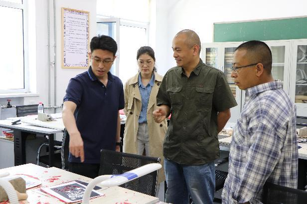 5月22日下午,邢台市文旅局吴龙飞副局长一行四人到365官网艺术与传媒系非遗传承创意中心进行参观调研,指导文旅融合工作,非遗传承创意中心工作室负责人郑恩峰老师、钱立稳老师、郭雨微老师、胡颖老师、经管系王俊红老师和服装系吴东利老师陪同。