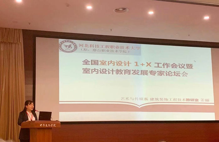 2021年4月24日,为贯彻落实《中华人民共和国国民经济和社会发展第十四个五年规划和 2035 年远景目标纲要》要求,深化推进“1+X 室内设计职业技能等级证书”试点和“全国室内装饰设计职业技能竞赛”等相关工作,增强设计教育适应性,推动行业高质量发展,在教育部职业院校艺术设计类专业教学指导委员会的大力支持下,中国室内装饰协会在中央社会主义学院隆重召开“全国室内设计 1+X 工作会议暨室内设计教育发展专家论坛”。 365官网艺术与传媒系建装教研室姜丽老师作为特邀“设计教育专家库”入库专家参加会议,同行还有室内设计课程的郭安老师,此次会议共有全国30个省300多所本科、职业院校领导和教师参加会议。