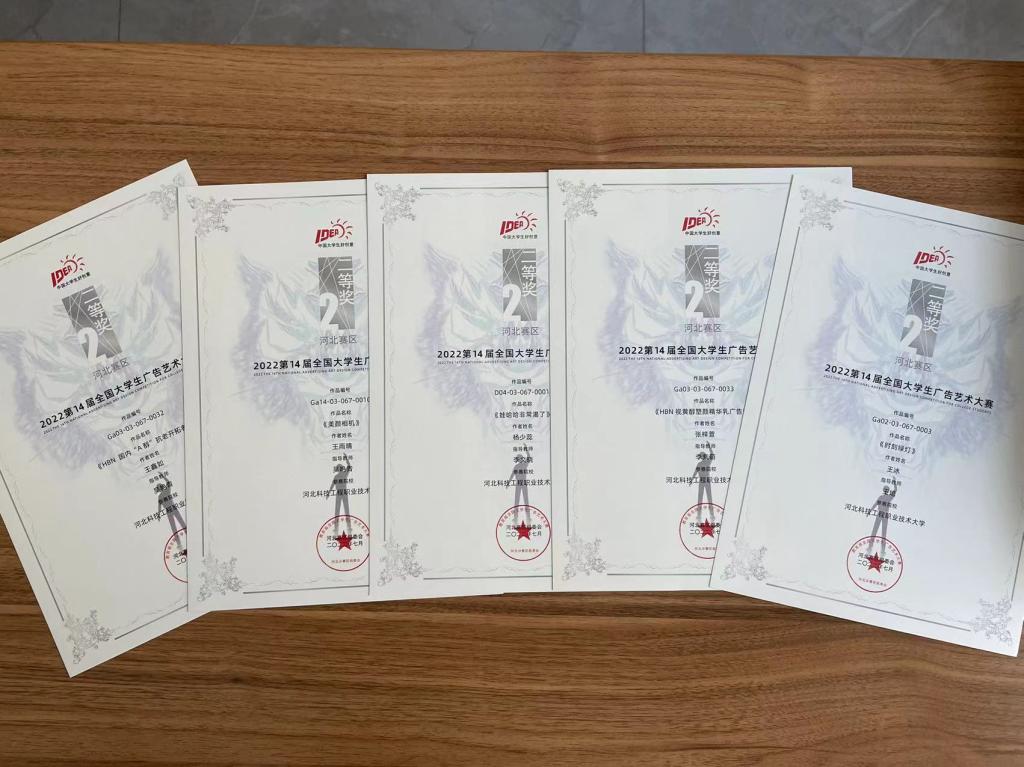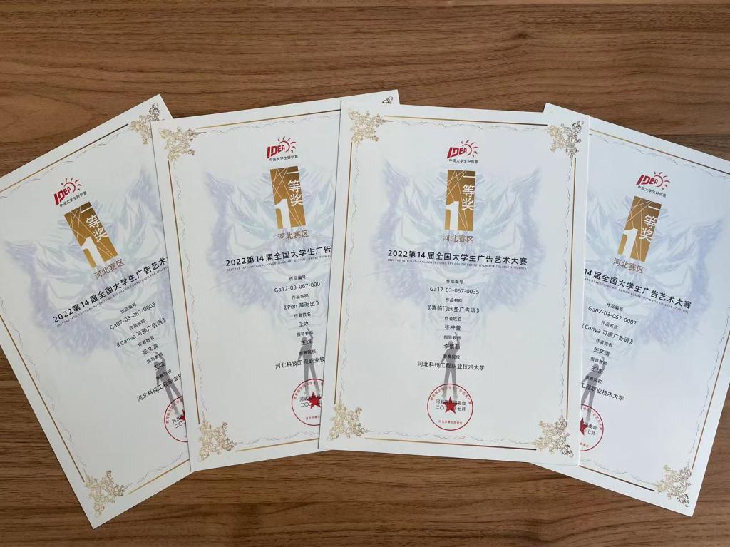 热烈祝贺我系全媒体广告策划与营销专业学子在2022年度第14届全国大学生广告艺术大赛河北赛区角逐中斩获两个类别共计17个奖项,其中包括一等奖4项,二等奖5项,三等奖2项,优秀奖6项,战果辉煌,收获颇丰!