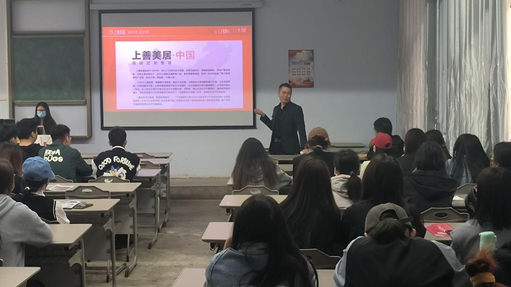 上善美居创始于2005年,是一家高端整装家居装饰公司,公司向学生展示了企业文化、就业市场形势、薪资待遇以及校企合作培养模式等相关信息。校友苏鹏涛经理同时介绍了该公司的岗位需求、用人标准和岗位晋升机制,让学生对企业有更直观的了解,对就业方向有了更明确的选择和计划。
