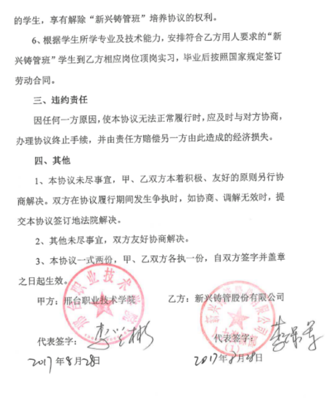 建立了28个基础较好、规模较大的校外实训基地:河北旭阳焦化有限公司实训基地、华北制药股份有限公司实训基地、河北润峰环境检测服务有限公司实训基地、北京京畿分析测试中心有限公司实训基地、旭阳化工有限公司实训基地、邢台市环境保护技术开发中心实训基地、河北绿晨环境检测技术服务有限公司实训基地、河北田加力生物科技股份有限公司实训基地、根力多生物科技股份有限公司实训基地等。现代学徒制对学生的实践能力要求比较高,校外实训基地能够为学生了解并理解企业经营流程提供真实的现场环境,通过对现场系统的操练和观察可以增强学生的学习兴趣,培养学生的应用能力,为更好的实践教学提供了基础。