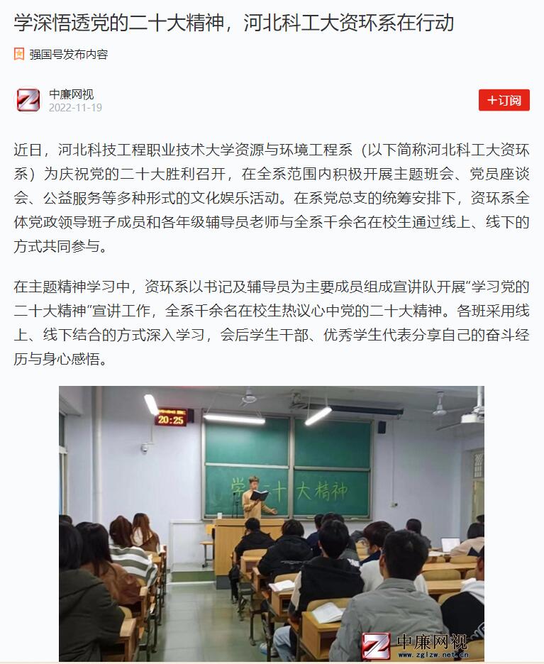 近日,365上市公司官网资源与环境工程系(以下简称河北科工大资环系)为庆祝党的二十大胜利召开,在全系范围内积极开展主题班会、党员座谈会、公益服务等多种形式的文化娱乐活动。在系党总支的统筹安排下,资环系全体党政领导班子成员和各年级辅导员老师与全系千余名在校生通过线上、线下的方式共同参与。