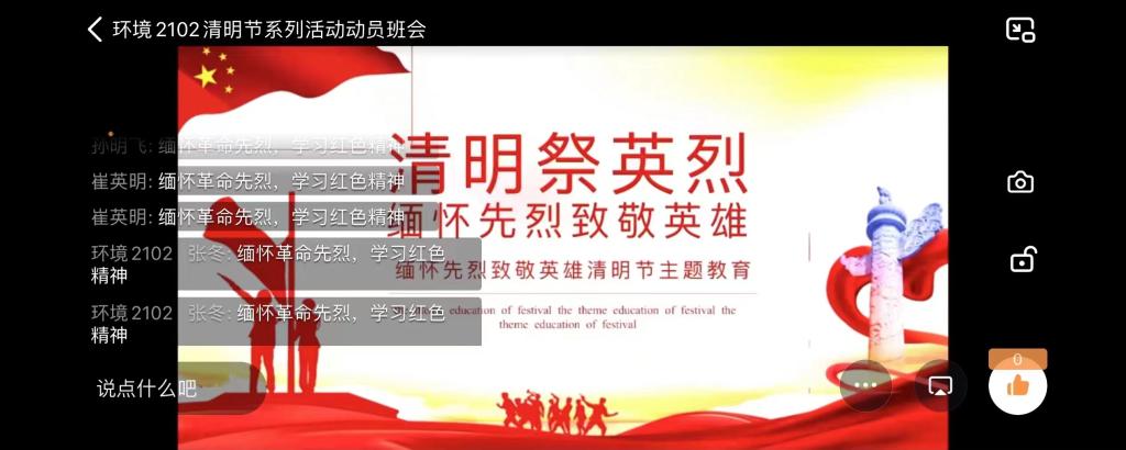 清明云祭祀,共同战疫情。4月2日,我系各班级开展了“鲜花祭先烈,英魂永长存”主题班会,并进行云上祭祀活动。